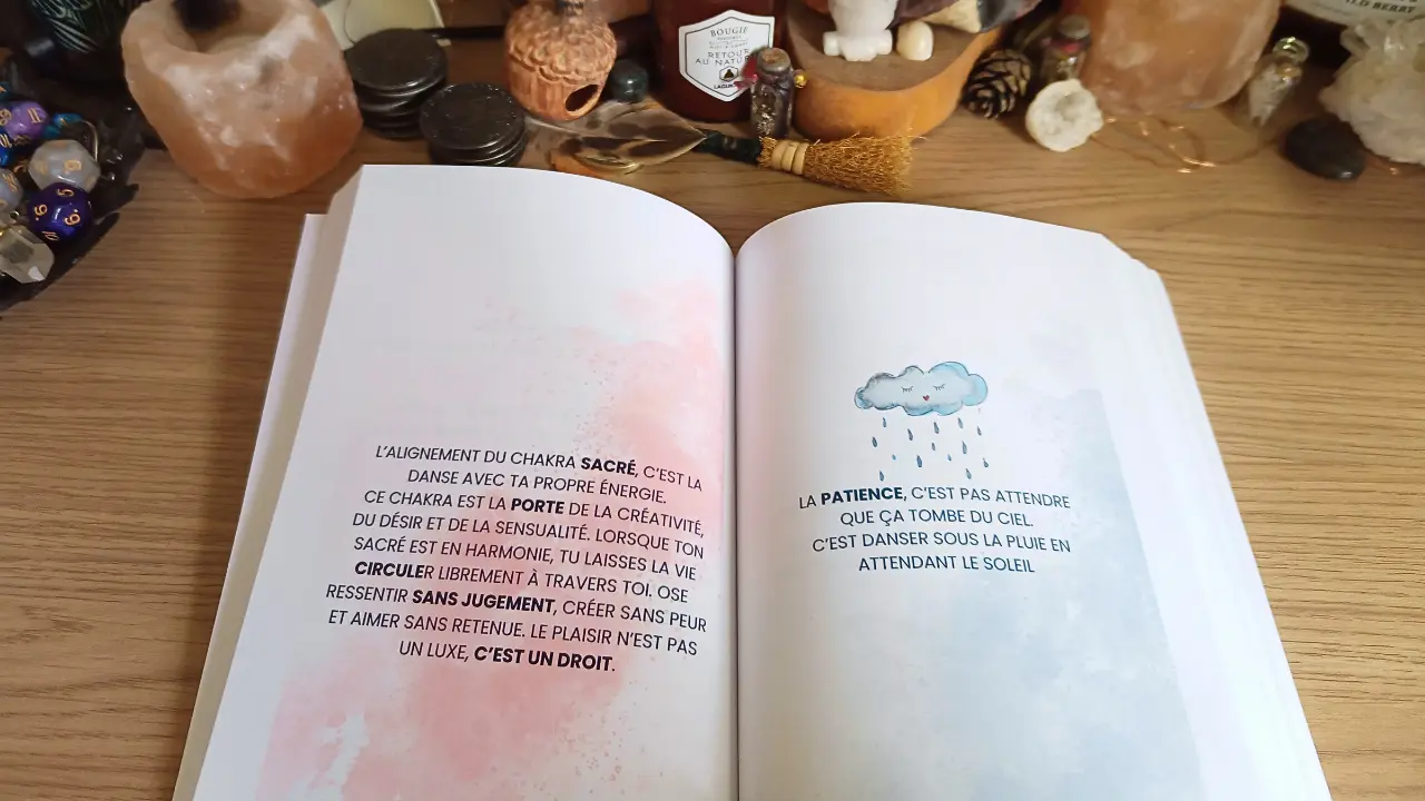 Après des années de confection, d'imagination, de prise de notes et de dessin, il est enfin là… cela n'a pas été si simple de créer ce livre Oracle, beaucoup d'idées qui vont et viennent, des choses que je ne m'autorise pas à dire et/ou à faire… au départ peut-être un peu la peur de ne pas plaire puis je déconstruis tout ça, je m'autorise à publier finalement ce que je veux et ce que je souhaite, ce qui me passe par la tête et la manière dont ça me passe par la tête, après plusieurs mois de réflexion, je reprends l'écriture et je m'y remets de plus belle, en quelques semaines je passe de 50 pages à 250 puis j'atteins le maximum 500 pages… j'aurais pu en écrire plus mais après tout c'est déjà pas mal pour un premier ouvrage…